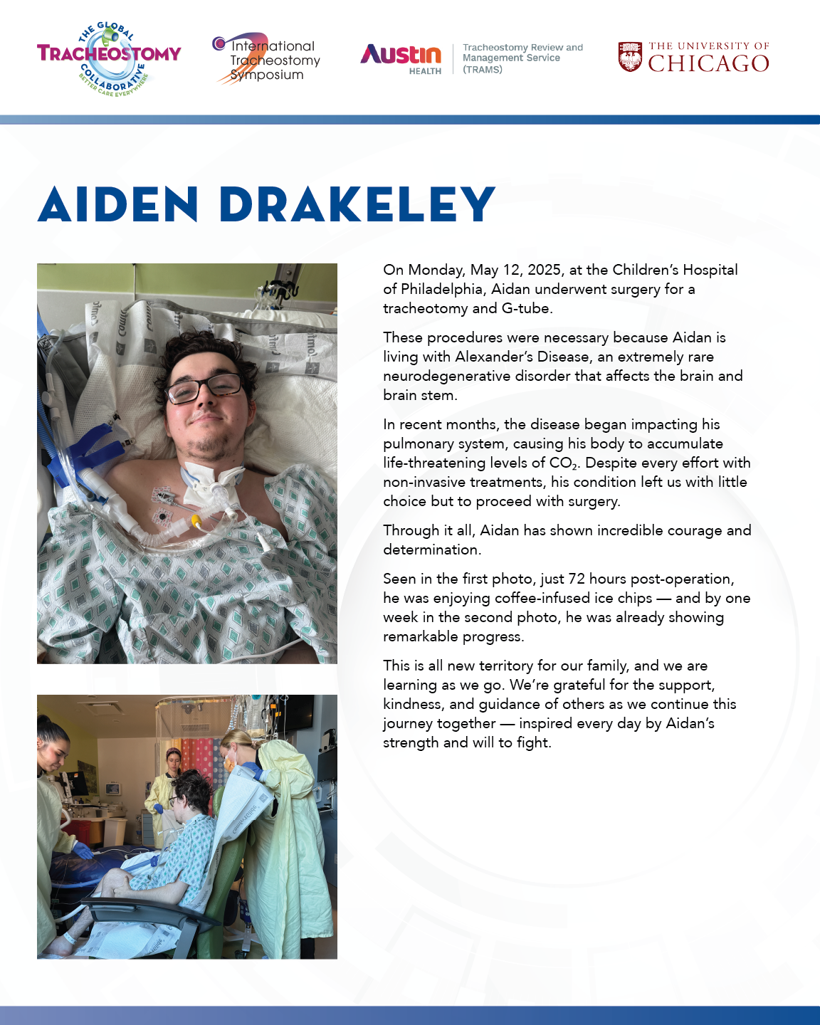 Link to purchase T-ShirtCalling all Trach Warriors, Caregivers and Trach Graduates!Share your photos and story! No one knows trach life like we do. Unfortunately, too many medical professionals, including those who care for individuals with tracheostomies, only see trachs in clinic or the hospital. Consent Form & Photo/Video UploadBy signing this release, you authorize us to use your photos during International Tracheostomy Symposium, GTC website and promotional materials. See some of the stories that have been submitted at the link below! Link to Videos PFC Facebook GroupsThere are several Facebook groups dedicated to providing a forum to connect patients with tracheostomies and their families to each other. Just follow these links to find out how to join each group: